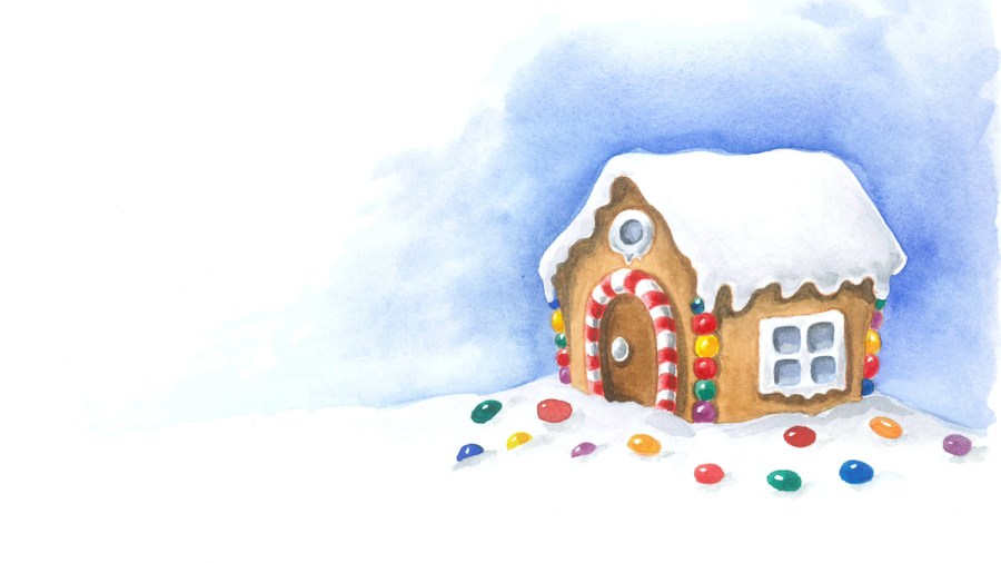 The children and I built a gingerbread village this year, bonding the panels of spiced bread with royal icing. We edged the shingles with sugar pearls, decorated the window mullions with jimmies, then added gumdrop trees and jujube flowers around a pond of sparkling sugar.